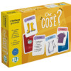 Che cos’è? è un gioco di carte fotografiche che permette di ampliare il lessico, sviluppare la capacità di descrivere gli oggetti di uso quotidiano e parlare dei diversi materiali di cui sono fatti.